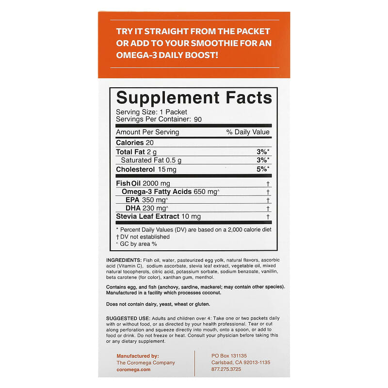 Thành phần có trong Coromega Omega-3 Orange Squeeze 90 Packets 2.5 g Each