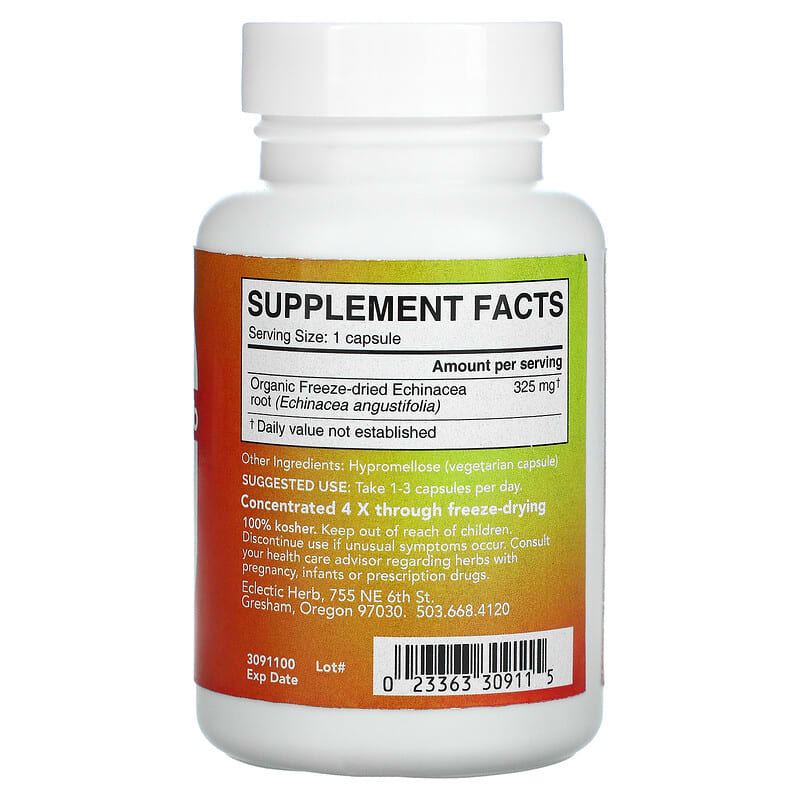 Thành phần có trong Eclectic Institute Freeze Dried Fresh Echinacea Angustifolia 325 mg 90 Veg Caps