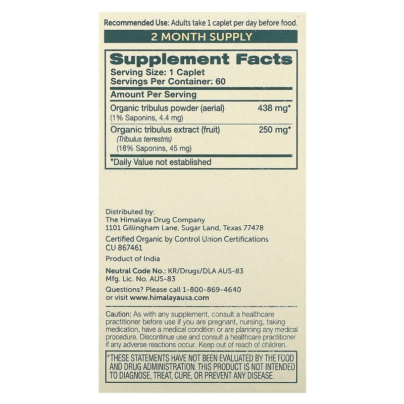 Thực phẩm bổ sung dưỡng chất (thuốc bổ) Himalaya Organic Tribulus 60 Caplets chính hãng Himalaya, Mã vạch 605069407014, nhập khẩu từ Mỹ