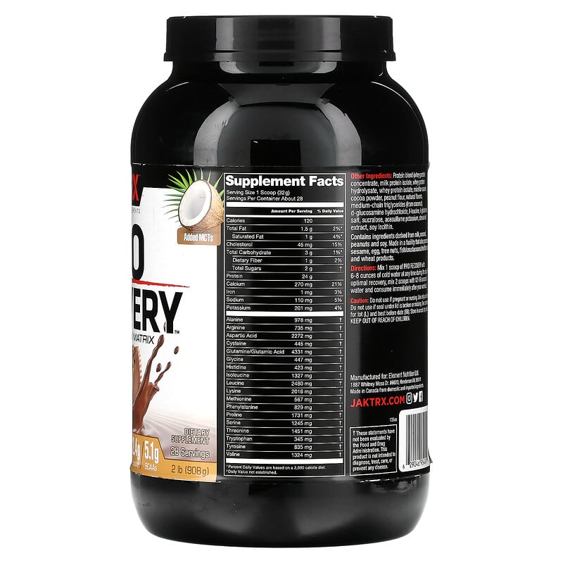 Thực phẩm bổ sung dưỡng chất (thuốc bổ) Jakt-RX Pro Recovery Premium Protein Matrix Peanut Butter Chocolate 2 lb (908 g) chính hãng Jakt-RX, Mã vạch 629046954049, nhập khẩu từ Mỹ