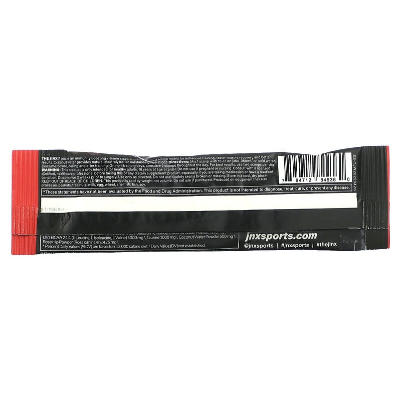One ServingNatural & Artificial Flavors Dietary Supplement THE JINX!® packs an immunity boosting vitamin stack and advanced amino matrix for enhanced training, faster muscle recovery and better results. Coconut water provides natural electrolytes for outstanding hydration.