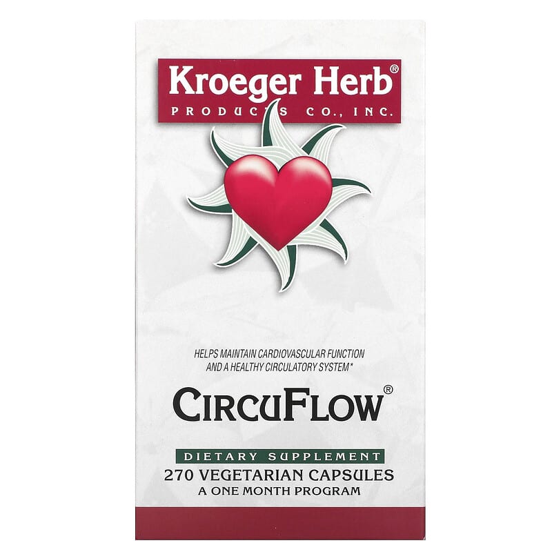 Kroeger Herb Co CircuFlow 270 Vegetarian Capsules là thực phẩm bổ sung dinh dưỡng của hãng Kroeger Herb Co, sản phẩm có mã vạch: 696916100158; kích thước hộp: 7.6 x 7.6 x 13.2 cm, trọng lượng (cả bao bì) 0.23 kg, được nhập khẩu từ USA – Mỹ