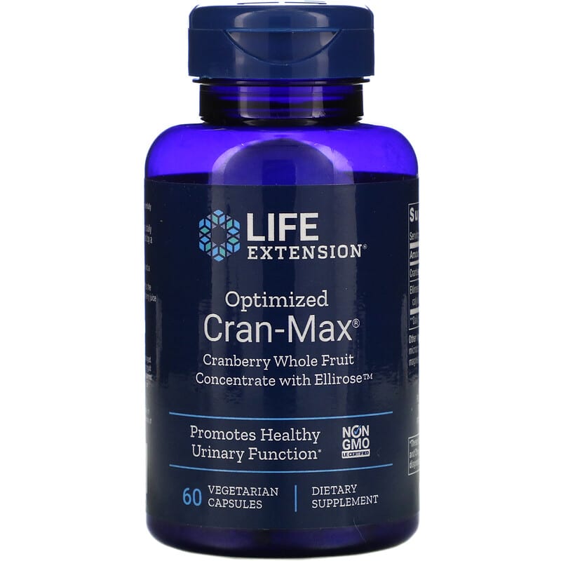 Thực phẩm bổ sung dưỡng chất (thuốc bổ) Life Extension Optimized Cran-Max Cranberry Whole Fruit Concentrate with Ellirose 60 Vegetarian Capsules chính hãng Life Extension, Mã vạch 737870142461, nhập khẩu từ Mỹ