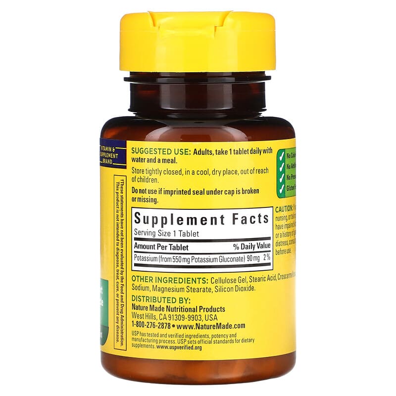 Sản phẩm Nature Made Potassium Gluconate 100 Tablets không phải là thuốc và không có tác dụng thay thế thuốc chữa bệnh. Người sử dụng nên tham khảo ý kiến của Bác sĩ hoặc Chuyên gia dinh dưỡng.