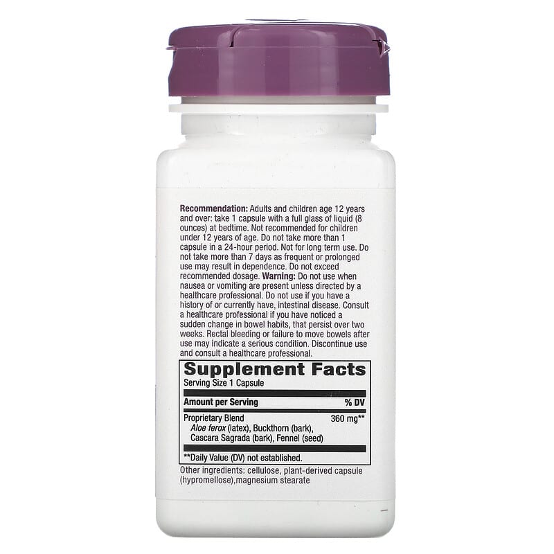 Do not use when nausea or vomiting are present unless directed by a healthcare professional. Do not use if you have a history of or currently have, intestinal disease. Consult a healthcare professional if you have noticed a sudden change in bowel habits, that persist over two weeks. Rectal bleeding or failure to move bowels after use may indicate a serious condition. Discontinue use and consult a healthcare professional.Notice: This product contains Aloe ferox, Buckthorn, and Cascara Sagrada. Read and follow directions carefully. Do not use if you have or develop diarrhea, loose stools or abdominal pain because Aloe, Buckthorn, and Cascara Sagrada may worsen these conditions and be harmful to your health. Consult your physician if you have frequent diarrhea, or if you are pregnant, nursing, taking medication or have a medical condition.Keep out of reach of children. Safety sealed with printed inner seal. Do not use if seal is broken or missing.