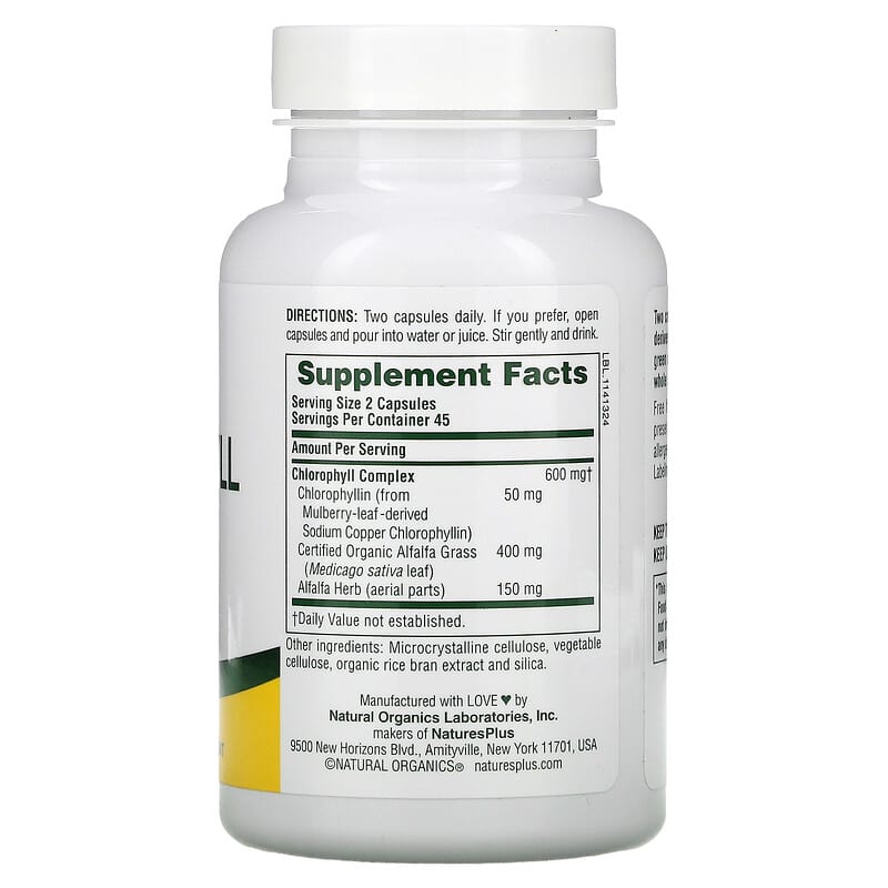 Thực phẩm bổ sung dưỡng chất (thuốc bổ) NaturesPlus Chlorophyll Complex 90 Capsules chính hãng NaturesPlus, Mã vạch 097467010802, nhập khẩu từ Mỹ