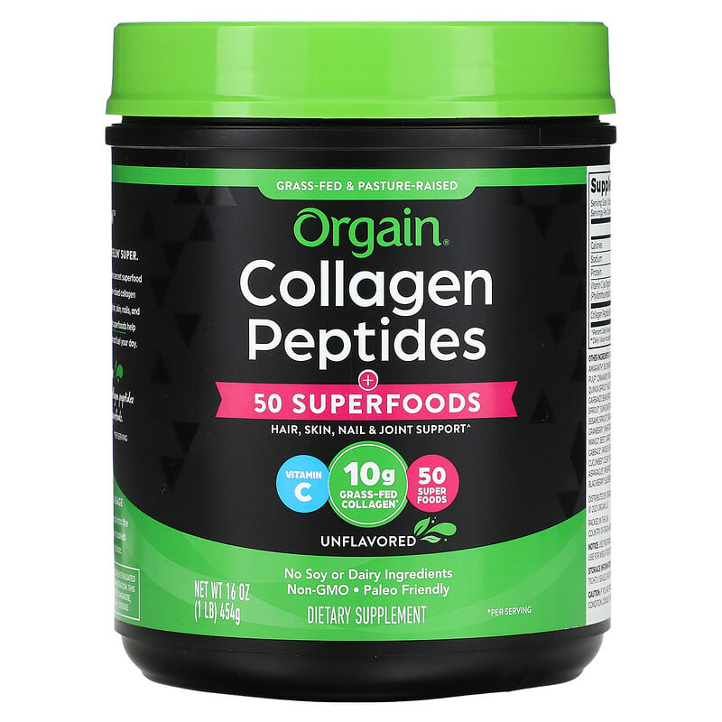 Thực phẩm bổ sung Orgain Collagen Peptides Plus 50 Superfoods Unflavored 1 lb (454 g)