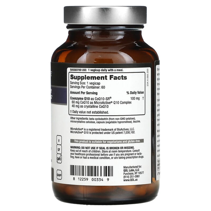 Healthy Aging24-Hour Sustained Release3x Better Absorbed than Regular CoQ10‡Doubles CoQ10 Levels in 3 WeeksDelivers Sustained Release Over 24 Hours Dietary Supplement VeganGluten FreeNon GMOGMPThis Product is Suitable for Vegetarians and Gluten-FreeSince CoQ10 is poorly absorbed, numerous technologies have been developed to improve its bioavailability. However, these enhanced formulations have a serious limitation: while increasing absorption in some people, they have