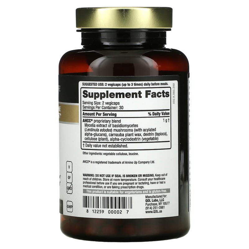Thực phẩm bổ sung dưỡng chất (thuốc bổ) Quality of Life Labs Kinoko Gold AHCC with Acylated Alpha-Glucans 60 Vegicaps chính hãng Quality of Life Labs, Mã vạch 812259000027, nhập khẩu từ Mỹ