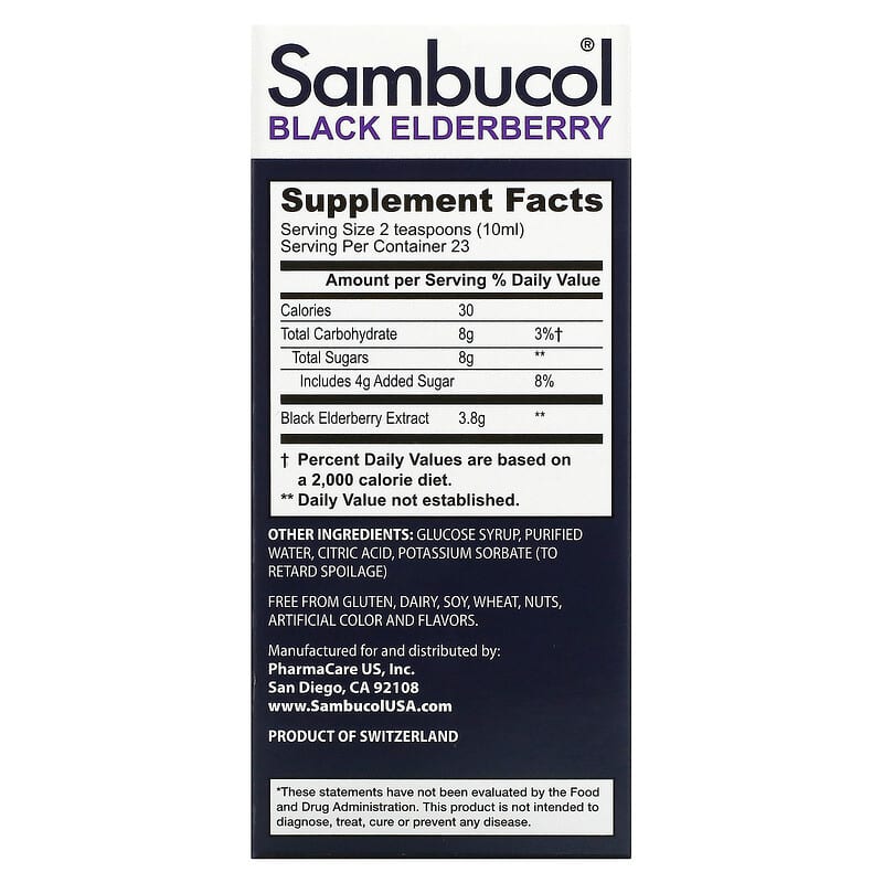 Gluten FreeGreat Tasting SyrupScientifically TestedSupports ImmunityHigh Antioxidant Levels Dietary Supplement Supports Immune SystemVirologist DevelopedNaturally Flavored with the Goodness of ElderberryUse Daily for Maximum BenefitKosher: Supervised by the Basel Kosher CommissionSambucol®, the original Black Elderberry extract, provides strong immune system support to help you and your family stay healthy throughout the year. Sambucol® Black Elderberry extract conveniently arms you with some of the best protection nature has to offer. Developed by a world renowned virologist, Sambucol® is the unique black elderberry extract that has been used in scientific studies. By using a proprietary method of extraction, only Sambucol® can guarantee consistent, immune supporting properties in every serving. Trusted by million worldwide, Sambucol® can be taken every day for continuous immune support.