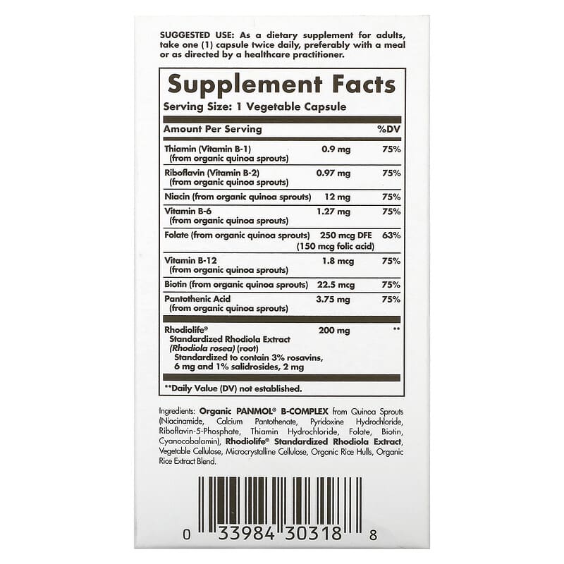 Thực phẩm bổ sung dưỡng chất (thuốc bổ) Solgar Rhodiola & B-Complex Daily Stress Support 60 Vegetable Capsules chính hãng Solgar, Mã vạch 033984303188, nhập khẩu từ Mỹ