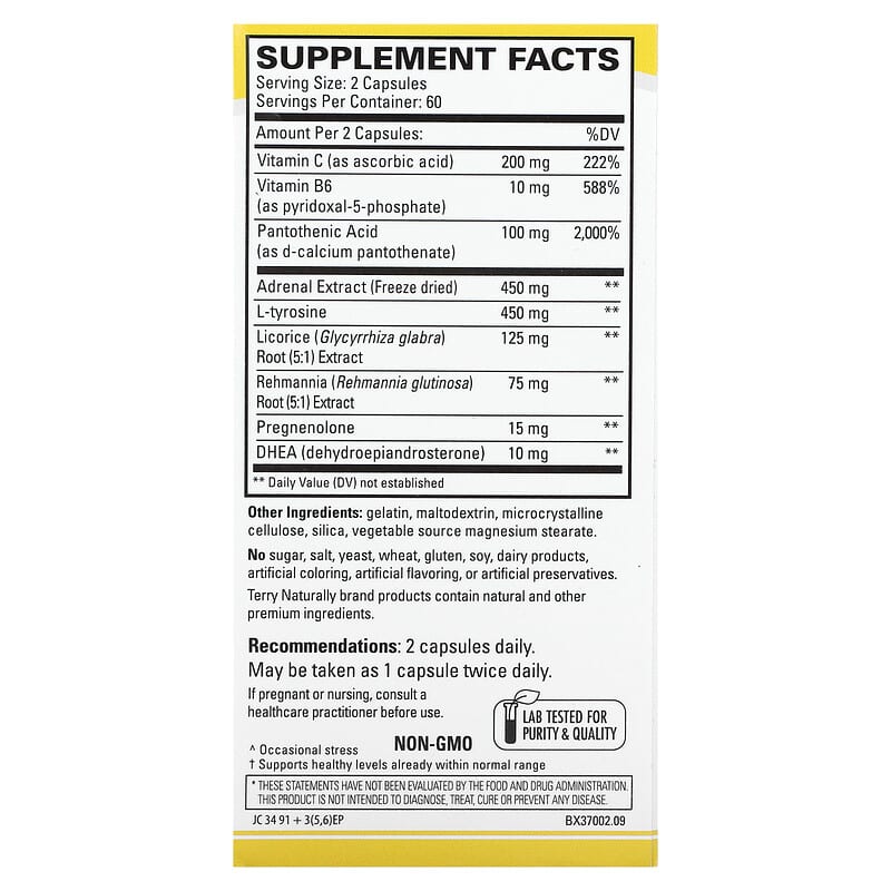 Thực phẩm bổ sung dưỡng chất (thuốc bổ) Terry Naturally Adrenaplex Maximum Adrenal Support 120 Capsules chính hãng Terry Naturally, Mã vạch 367703370022, nhập khẩu từ Mỹ