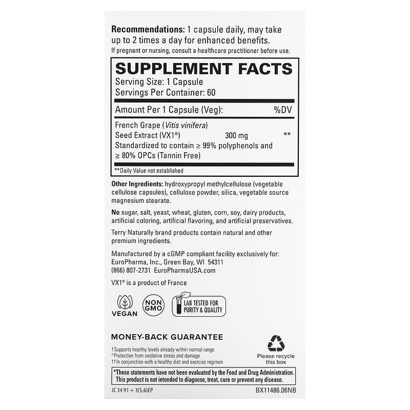 Thực phẩm bổ sung dưỡng chất (thuốc bổ) Terry Naturally Clinical OPC 300 mg 60 Capsules chính hãng Terry Naturally, Mã vạch 367703114862, nhập khẩu từ Mỹ