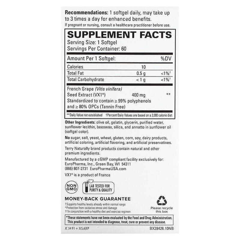 Thành phần có trong Terry Naturally Clinical OPC Extra Strength 400 mg 60 Softgels
