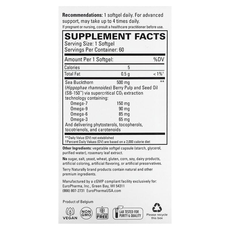 Thực phẩm bổ sung dưỡng chất (thuốc bổ) Terry Naturally Omega 7 Dry Eye Relief 60 Softgels chính hãng Terry Naturally, Mã vạch 367703135065, nhập khẩu từ Mỹ