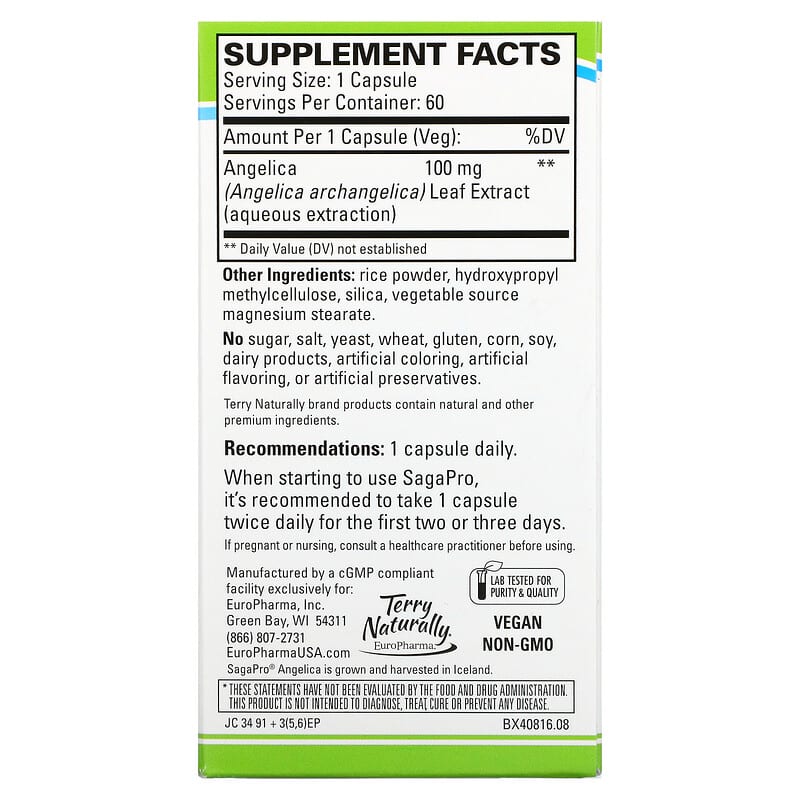 For Men and WomenClinically StudiedSupports Healthy Bladder Strength & FunctionFor Your Good Health Dietary Supplement Non-GMOVeganLab Tested for Purity & QualityAngelica – The Angel’s HerbInspired By NatureSagaPro® is the effective answer to support bladder health. This proprietary extract of Angelica archangelica leaves is from plants grown in the pristine environment of Iceland, where angelica has been prized for centuries. It was once considered so valuable that it was used as a form of currency. Today, the angelica leaves used in SagaPro are carefully gathered in an eco-friendly and sustainable manner. This clinically studied product is a modern update to a trusted botanical and has been shown to deliver powerful bladder support. In Women, SagaPro is ideal for healthy bladder strength and function. In Men, SagaPro supports healthy bladder and prostate function. The Bladder Support You’ve Been Looking For