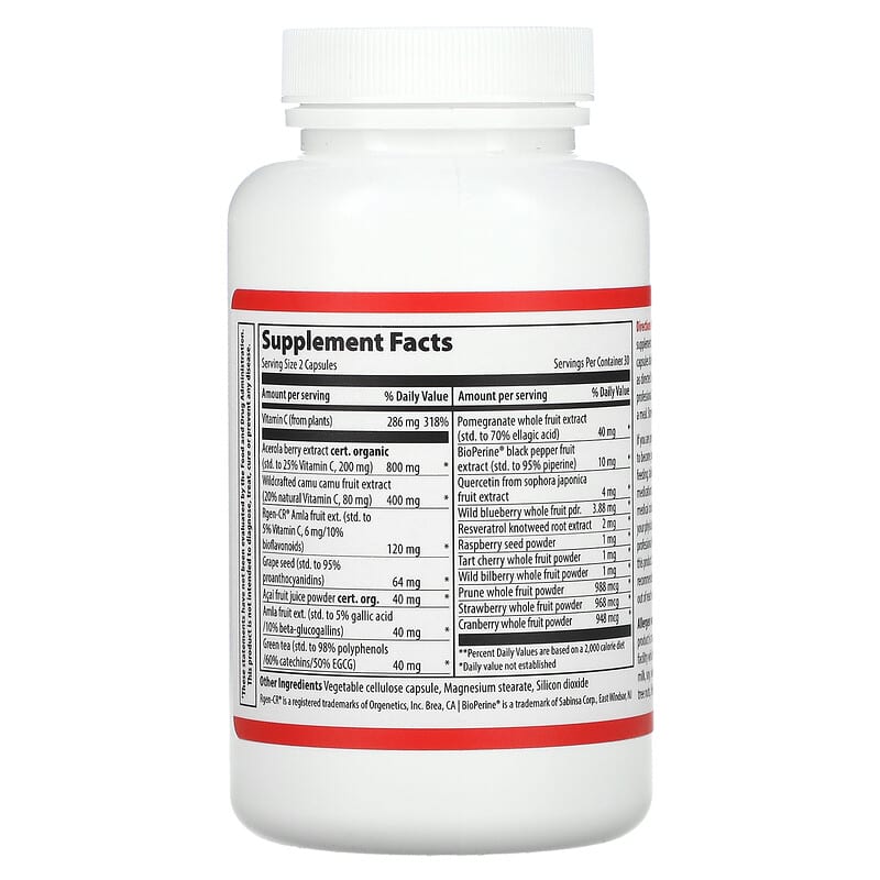 Clinically ProvenVersion 3. 318 Superfruits Including Amla, Acerola & Camu CamuGluten FreeNon-GMOSoy FreeDietary SupplementLook What’s Inside – Full Disclosure LabelingSuper Natural C is a high ORAC, plant-based vitamin C supplement from certified organic amla, acerola, and wildcrafted camu camu extracts. It’s a vitamin C supplement your body can recognize and synthesize as a food source.