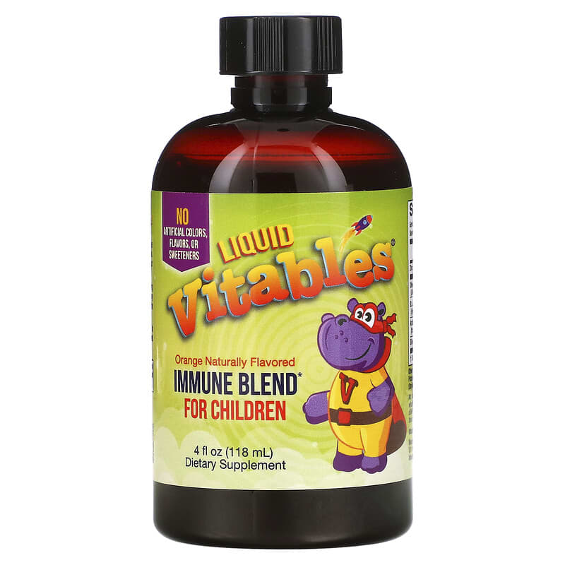 Vitables Liquid Immune Blend* For ChildrenSuper Liquid Supplement for Superheroes!Herb & Mineral BlendNo AlcoholOrange Flavor4 fl oz (120 ml)No Artificial Flavors, Colors or SweetenerscGMP Manufactured & Quality Confirmed