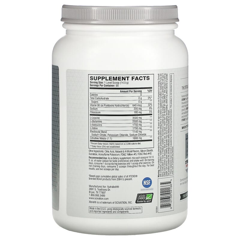 7g BCAA* Muscle Recovery + Electrolytes Naturally & Artificially Flavored 0 Calories* 0 g Carb* 0 g Sugar* 90 Servings Dietary Supplement NSF – Contents Tested & Certified Informed-Choice. Org – Trusted by Sport The World’s #1 BCAA Brand‡The Official Recovery Brand of Champions. Faster recovery is the key to better results. For over 10 years, Xtend has been making the best recovery products in the world. Powered by 7 grams of branched-chain amino acids (BCAAs), which have been clinically shown to support muscle recovery and growth, Xtend Original also contains hydrating electrolytes and additional performance ingredients to help you refuel, repair, and recover. Try all the sugar-free, mouthwatering flavors of Xtend to support your fitness goals. When to Take Xtend for Best Results: Pre Workout – Xtend Energy Intra Workout – Xtend Original Post Workout – Xtend ProCombine with any Xtend branded product every day, even on rest days, to help maximize your recovery. *Per serving. ‡Based upon cumulative global sales of all Xtend branded BCAA products from 2004 to present.